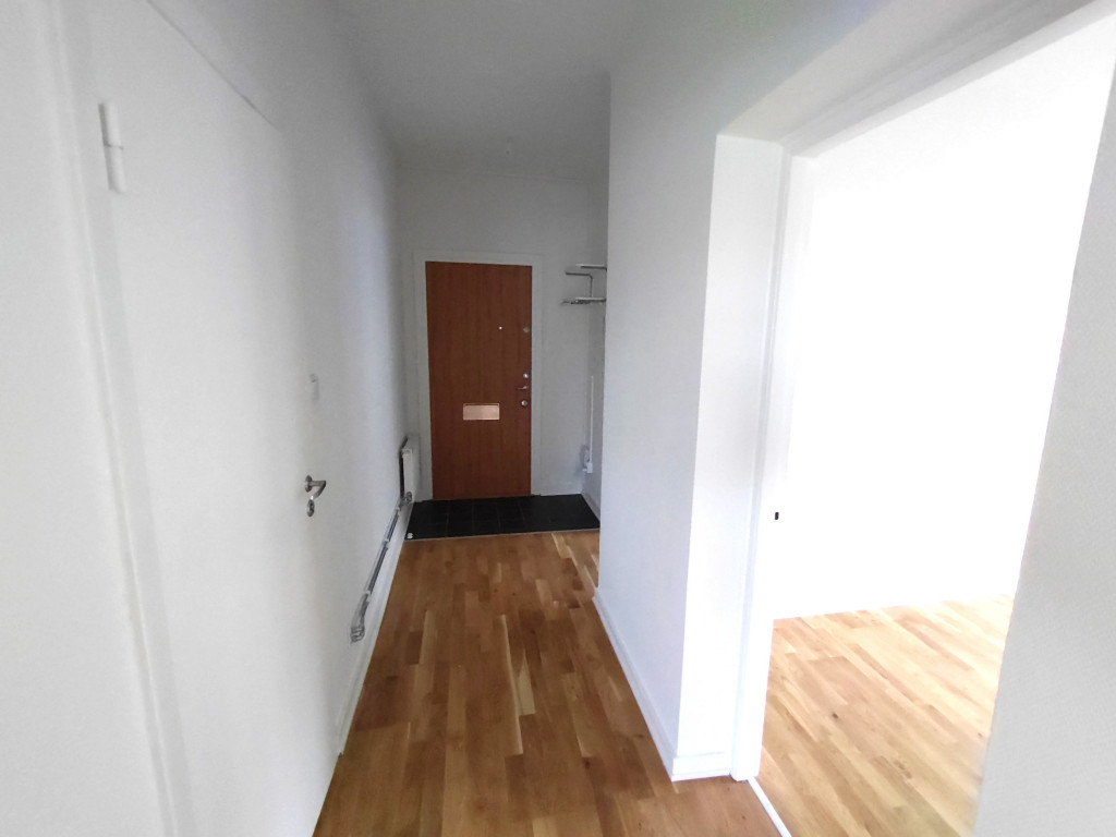 Beskrivning: Denna mycket trevliga lägenhet har nymålade vita ytskikt och nyligen lagt parkettgolv i samtliga rum exkl. köket som har en ny plastmatta.