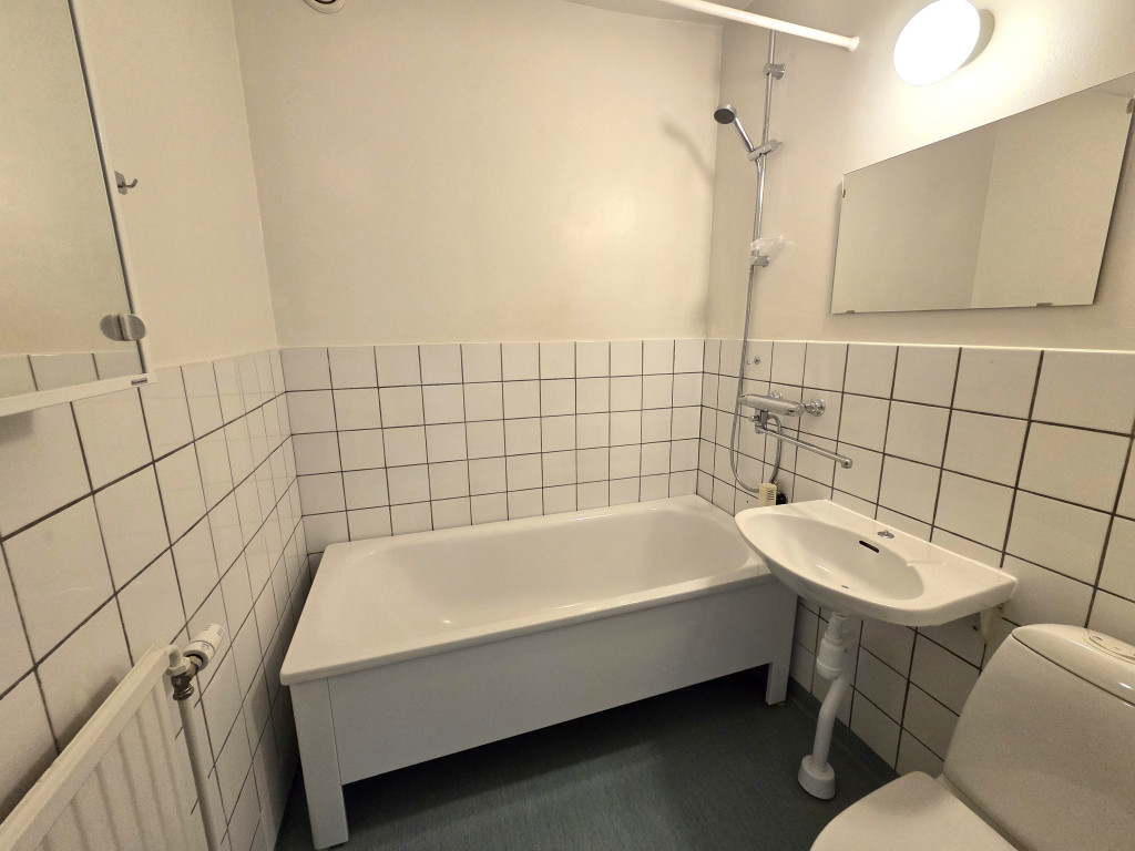 Utrustning: I köket finns spis med induktionshäll och varmluftsugn, kombinerad kyl/frys och spisfläkt. I badrummet finns badkar, handfat, basdrumsskåp och toalettstol.