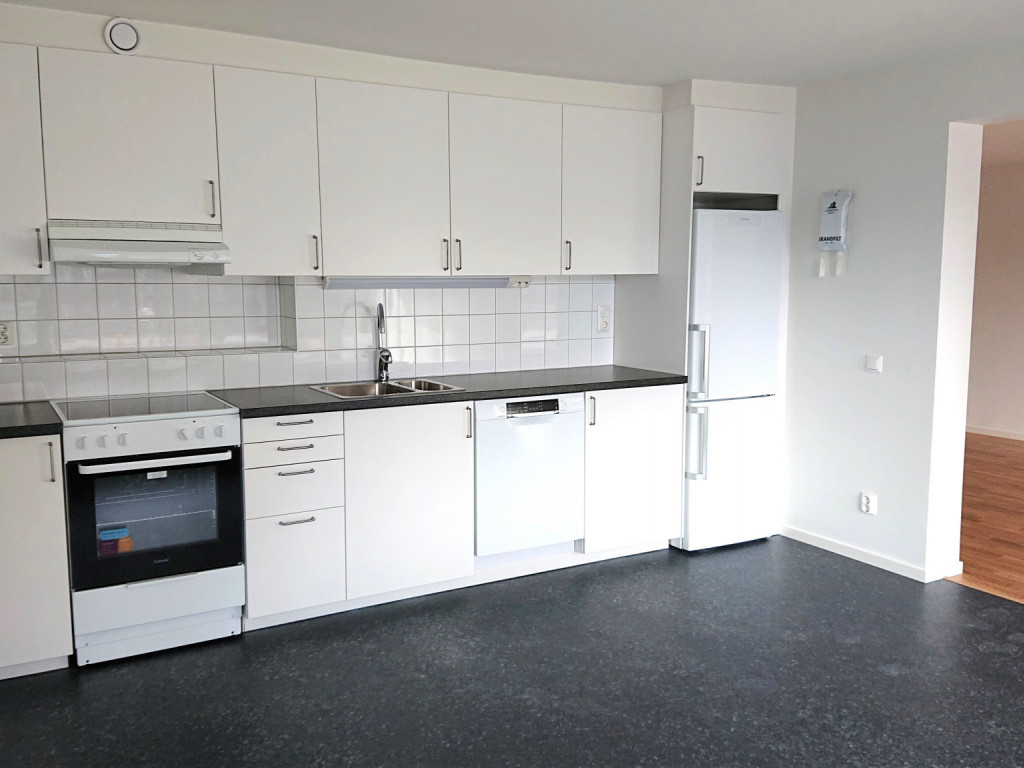 Utrustning: I köket finns spis med keramikhäll och varmluftsugn, diskmaskin, spisfläkt och en kombinerad kyl/frys. I badrummet finns vägghängd toalettstol, handfat, badrumsskåp, handdukstork och dusch.