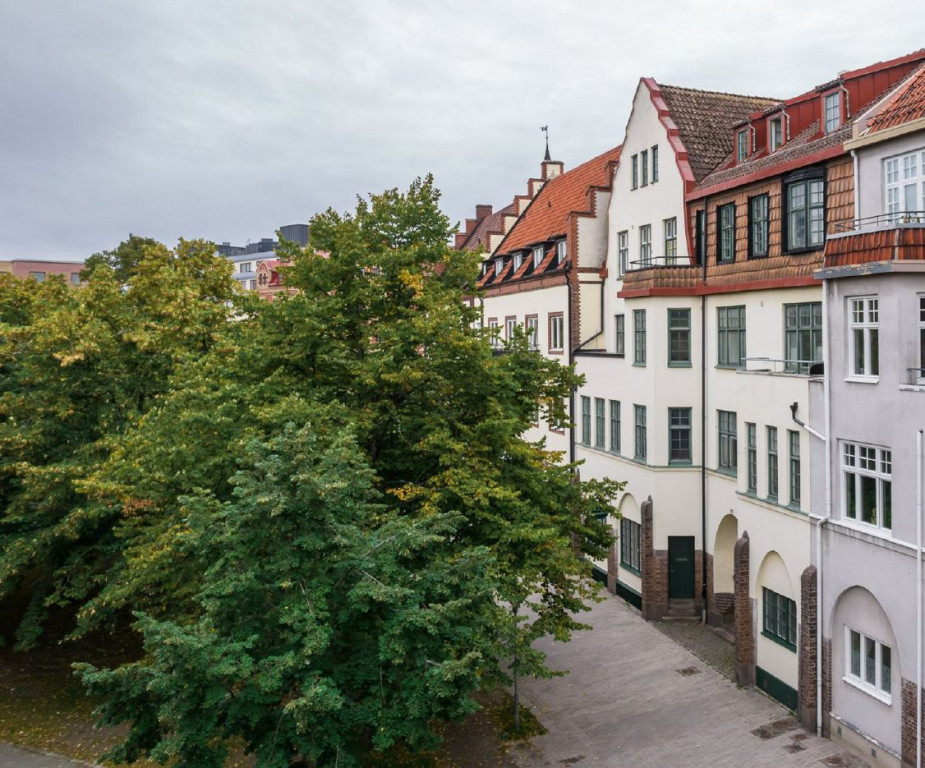 Lägenheten erbjuder ett mindre sovrum samt ett kök som vetter mot en liten innergård. Från köket når du en inglasad balkong, en perfekt plats att njuta av morgonkaffet året om.